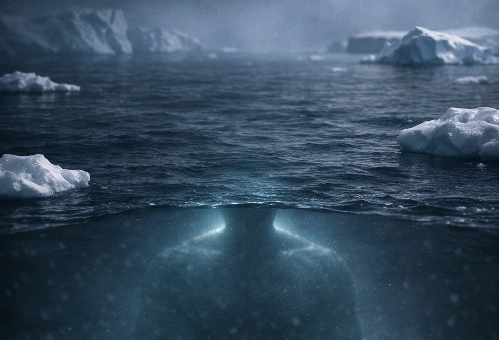 実際のところ、南極海は決して「何もいない海」ではない。環境省の資料によれば、南極海にはアザラシ、クジラ、イルカなど23種もの哺乳類が生息している。国立極地研究所も、プランクトンやオキアミを基盤に、クジラ・アザラシ・ペンギン・海鳥・魚・イカへとつながる豊かな食物連鎖が南極海に成り立っていると解説している。 地球最大の動物であるシロナガスクジラも、この海に暮らしている。体長30メートル近くに達するこの生物が夜間の海面にその白い腹を見せれば、慣れない者の目には「巨大で白い何か」として映るかもしれない。南極海という環境は、巨大生物との遇遇が現実に起こりうる場所であると同時に、誤認や誨7張が生まれやすい条件もそろっているといえる。