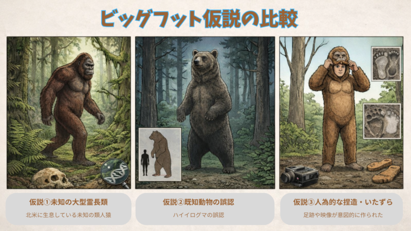 つまり、ビッグフットは「未確認生物」であると同時に、人間の想像力が生み出した文化的存在でもあります。